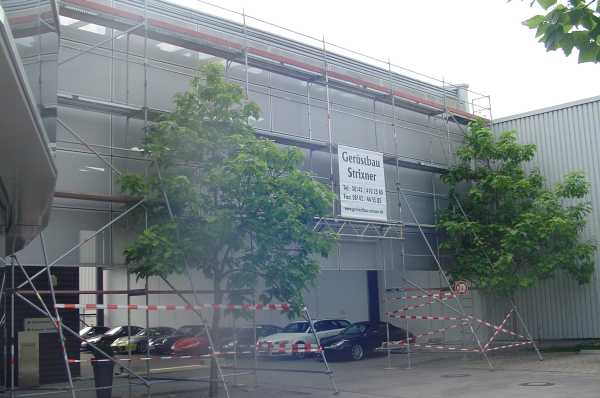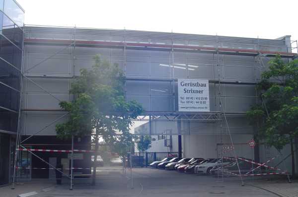 In Forstenried hat unser Gerüstbau ein freistehendes Gerüst für den bevorstehenden Dachrinnenwechsel erstellt. Das Gerüst steht in der Drygalskiallee beim Porschezentrum München. Um beim Autohaus einen nahezu uneingeschränkten Betrieb zu gewährleisten wurde die Durchfahrt mit einem 6,00m langen Gitterträger überbaut. Das Gerüst wird höchstens eine Woche am Objekt in Forstenried stehen, bis alle Arbeiten abgeschlossen sind und unsere Gerüstbauer wieder abbauen können.