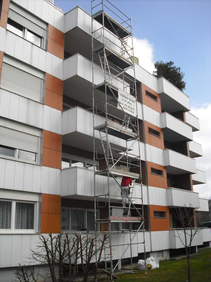 Wir rechnen mit einer Gerüstvorhaltung von ungefähr 6 bis 8 Wochen bis alle Arbeiten fertiggestellt sind und unsere Gerüstbauer in Fürstenfeldbruck wieder abbauen können. Auftraggeber für den Gerüstbau in Fürstenfeldbruck ist die Firma Leib aus Moorenweis.