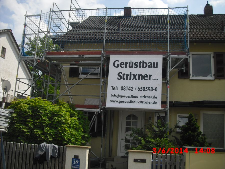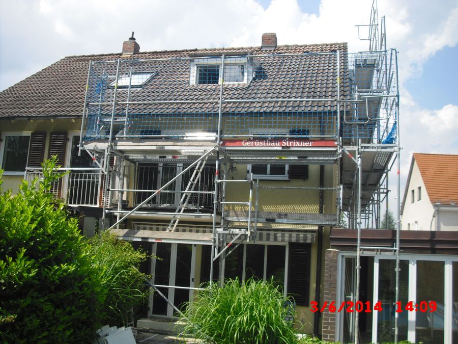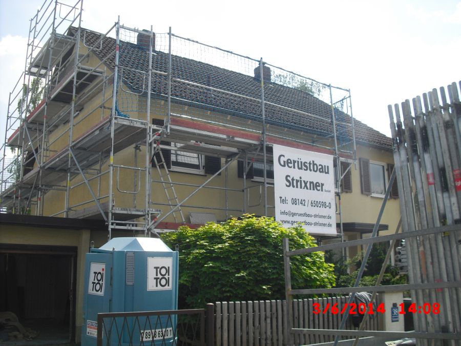 In München haben unsere Gerüstbauer an einer Doppelhaushälfte ein Arbeits- und Schutzgerüst für Dacharbeiten erstellt. Der innenliegende Leiteraufgang sorgt für einen sicheren Aufstieg in die oberen Gerüstetagen. Die Alternative zum Leiteraufgang wäre eine Alupodesttreppe für einen bequemeren Aufgang. Der Aufbau des Gerüstes in München wurde durch drei Gerüstbauer in weniger als einem Arbeitstag realisiert. Wir montieren für Sie Gerüste in un um München.