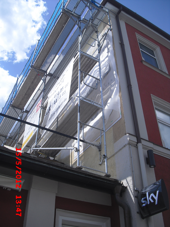 Wir rechnen mit einer Gerüstvorhaltung von ungefähr 6 Wochen bis alle Reparaturarbeiten und Malerarbeiten abgeschlossen sind und unsere Gerüstbauer in München wieder abbauen können.Auftraggeber für den Gerüstbau in München ist die Firma Hönninger