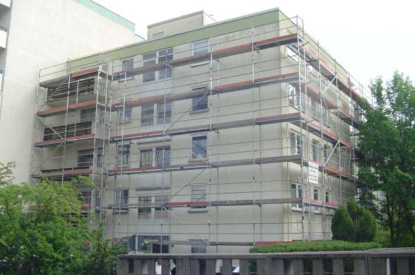 In Ismaning hat unser Gerüstverleih 800qm Gerüst für Dämmarbeiten erstellt. Das Fassadengerüst hat eine umlaufende Standhöhe von ca. 12,30m, das ergibt eine Arbeitshöhe von 14,30m (Oberkannte Gebäude). Wir rechnen mit einer gesamten Standzeit von ca. 6 – 8 Wochen bis alle Arbeiten abgeschlossen sind und unsere Gerüstbauer in Ismaning wieder abbauen können.
