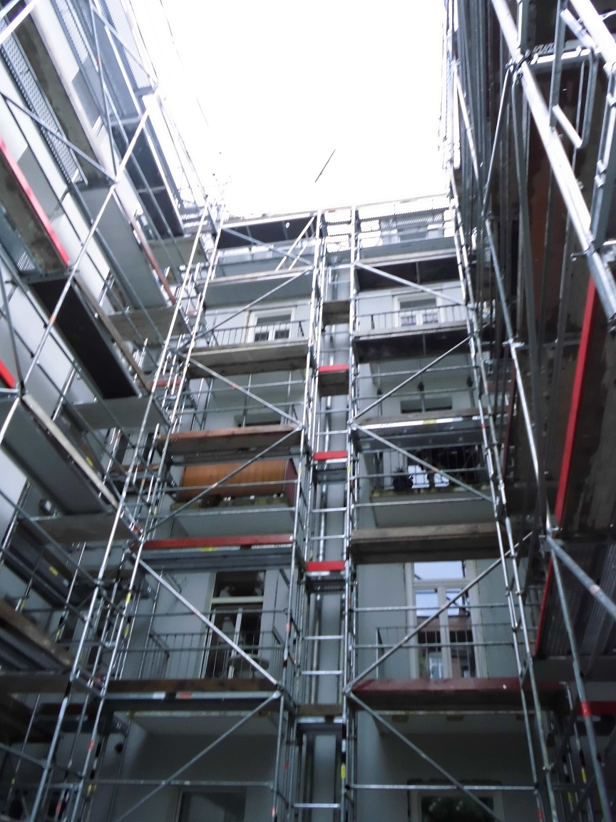 An diesem Einsatz in München waren 3 Gerüstbauer und 2 Gerüstbauhelfer beteiligt, welche das Gerüst schnell und effizient aufgebaut hatten. Unser Gerüstbau rechnet mit einer Gerüstvorhaltung von ungefähr 6 Wochen, bis alle Arbeiten abgeschlossen sind und unsere Gerüstbauer in München wieder abbauen können. Auftraggeber für den Gerüstbau in München ist die Firma Hönninger.
