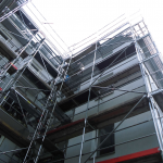 An diesem Hochhaus (Siehe Bilder) erstellten unsere Gerüstbauer in München ein so genanntes Fassadengerüst. Es heißt so da es mittels Dübel an der Fassade verankert worden ist. Das Gerüst wurde erstellt um an der Fassade eine Wärmedämmung anbringen zu können. Gerade im Winter ist es auf jeden Fall kostengünstiger, denn durch die Dämmung werden Heizkosten gespart. Somit hat man es schön warm, ohne übermäßig viel heizen zu müssen. Je nach Gebäudeart benutzt man unterschiedliche Materialien der Wärmedämmung. Infrage kommen zum Beispiel eine Schaumglasplatte, Polyurethan..etc.