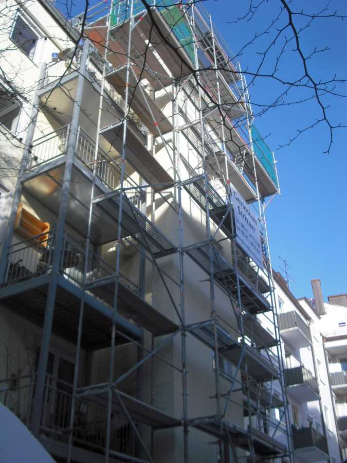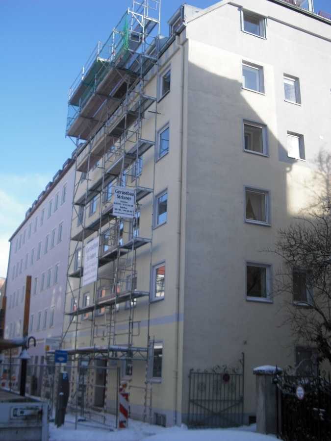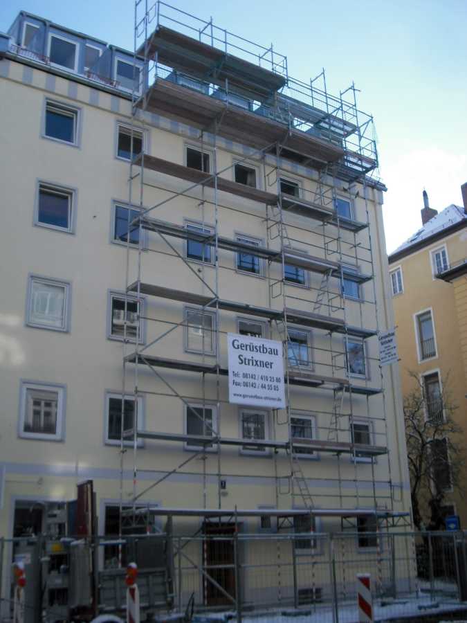 Hier zeigen wir ihnen das Fassadengerüst in München zur Straßenseite: