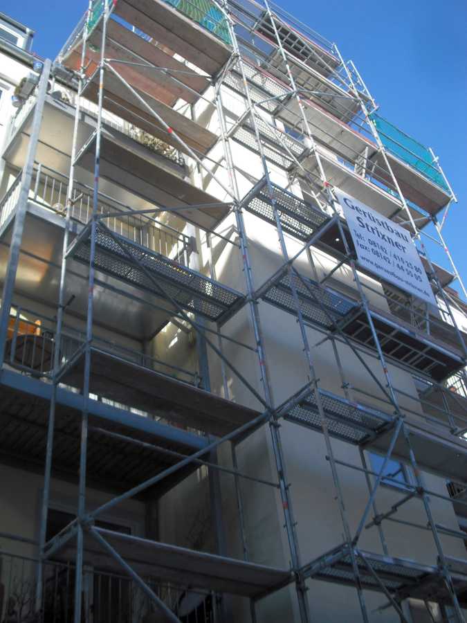 Unsere Gerüstbauer waren in München bei einem Einsatz tätig. Es wurde ein Fassadengerüst, beziehungsweise ein sogenanntes Lehrgerüst ohne 3-teiliges Geländer,da nur in den obersten Etagen gearbeitet wird. Innenliegende Leitergänge wurden ebenfalls von unseren Gerüstbauern montiert, um einen sicheren Aufgang im Gerüst zu ermöglichen. Beim Einsatz waren 2 Gerüstbauer und zwei Gerüstbauhelfer beteiligt.
