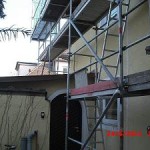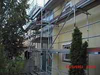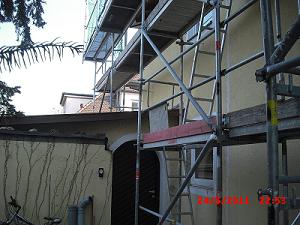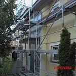 Innenliegende Leitergänge, welche ebenfalls von unseren Gerüstbauern erstellt worden sind, sorgen für einen sicheren Aufgang der Arbeiter innerhalb der einzelnen Gerüstetagen. An diesem Einsatz in München waren 3 Gerüstbauer beteiligt, die das Gerüst innerhalb kürzester Zeit aufgebaut hatten. Wir rechnen mit einer Gerüstvorhaltung von 4 Wochen bis alle Arbeiten abgeschlossen sind und uunsere Gerüstbauer in München wieder abbauen können. Auftraggeber für den Gerüstbau in München ist die Firma Vates.