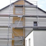 Unsere Gerüstbauer waren bei einem Einsatz in Englschalking bei der Arbeit tätig gewesen. Hier ist an einem Haus von unseren Gerüstbauern ein Gerüst erstellt worden, das benötigt wird, um Arbeiten an der Fassade verrichten zu können. Dieses Gerüst kann man auch als sogenanntes Fassadengerüst bezeichnen, da es von unseren Gerüstbauern mittels Dübeln an der Fassade verankert worden ist. Innenliegende Leitergänge, welche von unserem Gerüstbau zusätzlich angebracht worden sind, sorgen für einen sicheren Aufgang der Arbeiter im Gerüst. An diesem Einsatz in Englschalking waren 2 Gerüstbauer und ein Gerüstbauhelfer beteiligt, die das Gerüst innerhalb kürzester Zeit aufgebaut hatten.