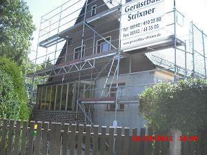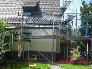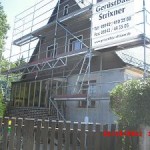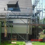 Unsere Gerüstbauer waren bei einem Einsatz in München in der Peter Müller Straße bei der Arbeit tätig gewesen. Auf diesen Bildern kann man das Fassadengerüst erkennen, das so genannt wird, weil es von unseren Gerüstbauern mit Hilfe von Dübeln an der Fassade verankert worden ist. Es wird benötigt um Arbeiten an Dach und Fassade verrichten zu können. Innenliegende Leitergänge, welche ebenfalls von unseren Gerüstbauern erstellt worden sind, sorgen für einen sicheren Aufgang der Arbeiter im Gerüst.